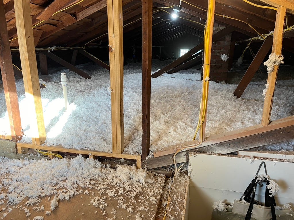 - Cover your attic with blown insulation. I live in a 100 year old house in Tulsa, Oklahoma. The attic had fifty-year-old insulation in spots and in most areas nothing. The heat in winter and air conditioning in summer struggled to keep up with all the thermal loss. I contacted a local insulation company and contracted for them to come and blow insulation in my attic, about 1,500 square feet of space. The job took about an hour and cost about $1 per square foot, and I was left with about 13” of fluffy white insulation across the attic. Through temperatures in the 90s and 100s, things began to change. The air conditioner struggle much less and the house felt much cooler. In the winter, the house was not as drafty. An analysis of our electricity bill shows a big difference before and after the insulation. My conclusion is that if you do not have good insulation, adding it in your attic is one of the best things you can do to make your home more comfortable.